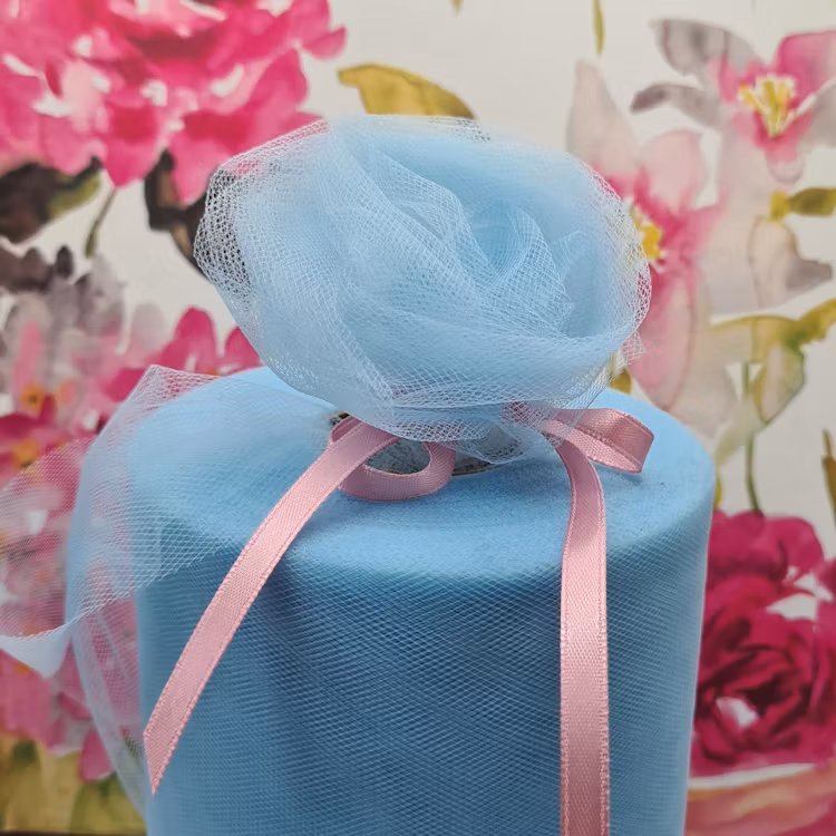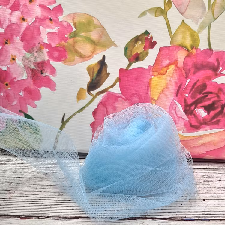 Storlek: 15 cm bred och 91.44 m/rulle. Finns i fyra färger. Här är en tyll i vitt lämplig för slöja, hatt, bröllop, stationära blomarrangemang, påskkorgar eller festdekorationer. Använd för bröllop, bröllopsslöja, båge eller förpackning. Kan kombineras med våra "Presentpåsar Vita, organza, 9x7 cm." Tyllnätstyget är mjukt och genomskinligt inte styvt nät. Lämpligt för att göra tutukjol för babyflicka eller tyllunderkjol. Perfekt tylltyg för klädtillverkning för att göra tyllkjol till brudtärna, prinsessklänning, flickdräktklänning. Detta tylltyg är mångsidigt för tutu-bordskjol för fester, bröllop, tyll-poms, bröllopsstol, bågar, presentinslagningsbågar, pannband med trollhår m.m. Perfekt för födelsedag/babyshower, festliga borddekorationer, barns sovrumsdekorationer, bröllop, husdekorationer, julkransdekorationer etc. "Lilly" sidenband, Light Orchid, 0,6 cm bred har vi använt på rosen. Den är jättelätt att göra, snurra tyllen runt två fingrar. Knyt med ett band. KLART!