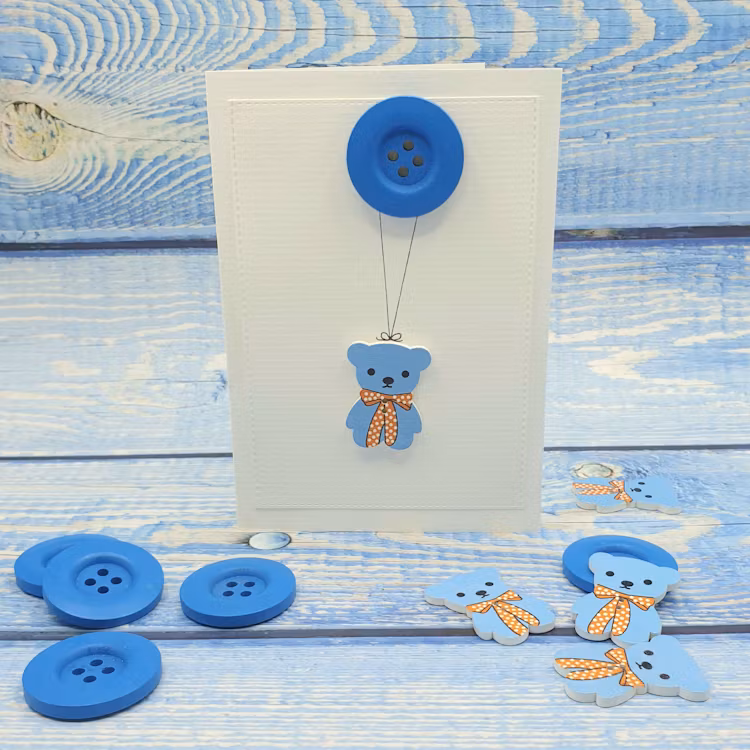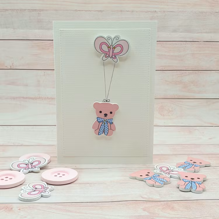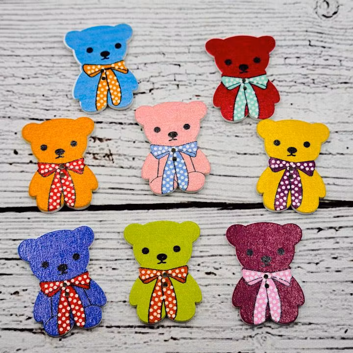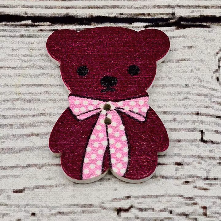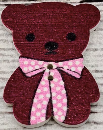 Storlek 32x22 mm. Gosig nalle! Jättesöta nallar att göra mysiga installationer med! Ha det jättekul med detta söta djur! På sista fotona har vi dekorerat kort med att limma på en nalle och "Stor träknapp Blå, 3 cm" samt "Träknapp Fjäril Rosa Saga". Enkelt och sött!