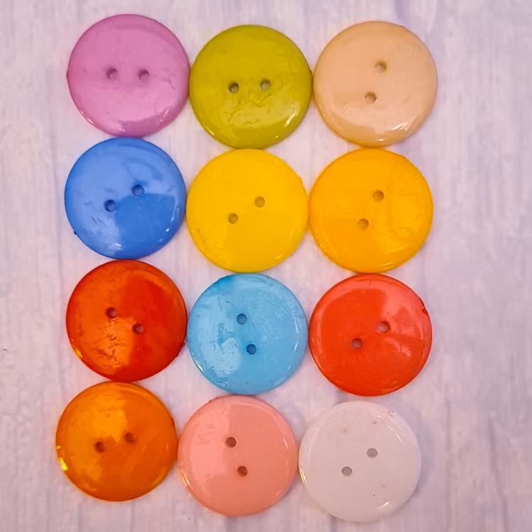 Spräcklig knapp som har en bra storlek för att användas i kläder. Finns i hela 12 olika färger.